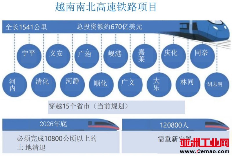 近日,越南政府宣布,南北高铁项目正进入关键的土地清理阶段,要求15个沿线省市争分夺秒,务必在2025年8月19日前启动相关场地清理工作,并在2026年底前完成超过1.08万公顷的土地清垦和12.08万人的安置任务。这一工程被视为越南交通发展的里程碑,但也面临着时间紧、任务重的巨大挑战。