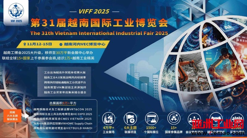 2025年11月12日至15日,第31届越南国际工业博览会VIIF将于越南河内VEC博览中心盛大举办!作为越南历史最悠久、最具影响力的工业盛会,本届展会全面覆盖制造业基础材料、关键零部件、装备、智慧能源、电子制造及工业智能集成解决方案,打造从技术到应用的完整供应链生态链。