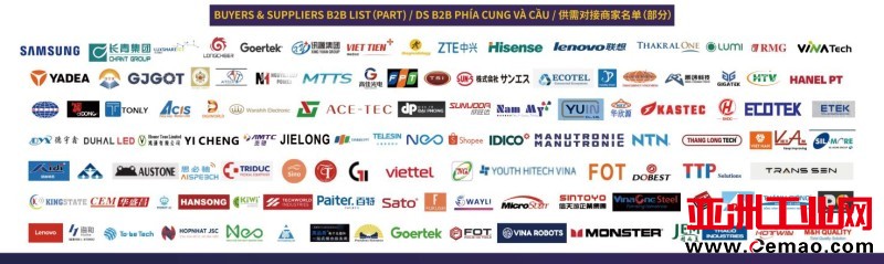 其中,参展参会的上百家知名龙头企业包括三星集团、富士康、比亚迪、中国移动、立讯、欣旺达、歌尔、美的、海信、TCL、龙旗、雅迪、公牛、国泰君安、菲沃泰、希立、创轩激光、科匯工業、思必驰、雅思电子、长青集团、高佳光电、希诺、志丰电子、联信、菲沃泰、奇利....等,还有越南龙头企业包括VIETTEL、FPT、THACO、HANEL、HPC、LUMI、AITECH、The Gioi Di Dong ...等。
