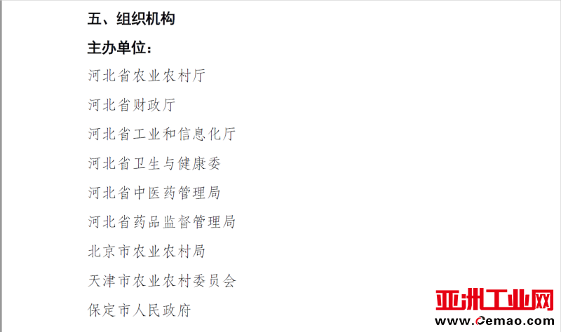主办:河北省农业农村厅联合河北省财政厅、河北省工业和信息化厅、河北省卫健委、河北省中医药管理局、河北省药品监督管理局、北京市农业农村局、天津市农委和保定市人民政府等