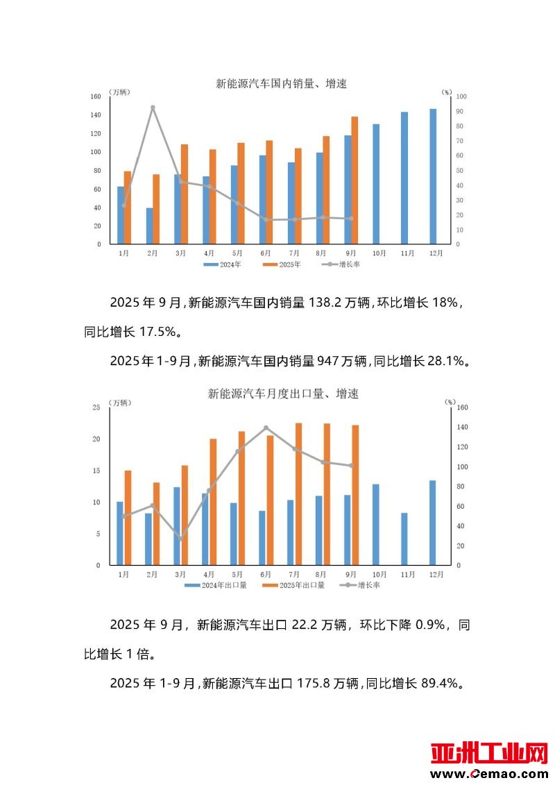 2025年9月新能源汽车产销情况