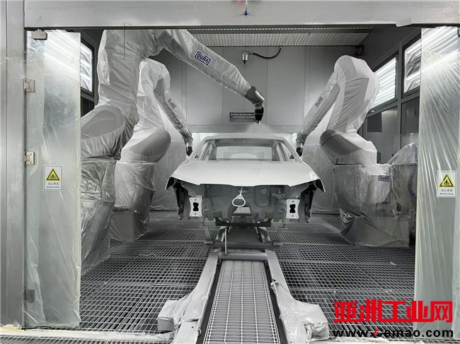 杜尔在为涂装车间配备先进技术方面发挥了关键作用。其中,电驱动RoDip® E通过自由可编程小车完成前处理(PT)和电泳(EC)过程:每个小车配备输送驱动与独立旋转驱动装置,使车身水平和旋转运动可独立控制。得益于此,系统可根据车型设置不同浸渍曲线,进而提升涂层质量、提高能源效率并节省单车成本。该涂装车间另一特色在于底漆与清漆在同一喷房内完成喷涂,有效节省了投资成本。交付范围还包括密封线、七台喷涂机器人、烘房及注蜡线等配套设备。