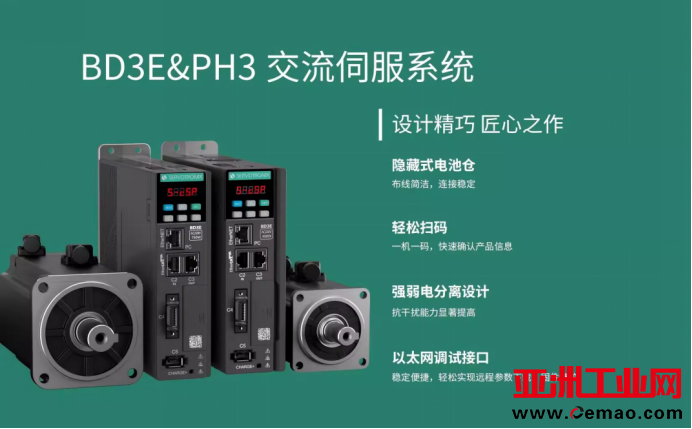 BD3E驱动器:以调试简单为核心(MTP电子铭牌、一键自整定、图形化向导),具备坚固品质(三防涂层、CE认证)与精巧设计(强弱电分离、隐藏电池仓)。