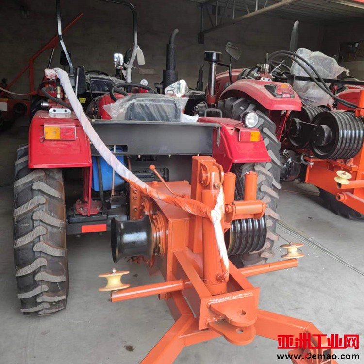 引普通钢丝绳或锦纶绳,另一边是带槽的大直径卷筒可以牵弓|无扭钢丝绳。拖拉机牵引机可以在座位上操作,也可以在地面操作;拖拉机牵弓|机可配