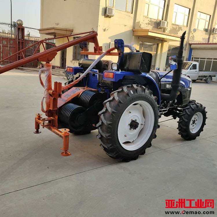 引普通钢丝绳或锦纶绳,另一边是带槽的大直径卷筒可以牵弓|无扭钢丝绳。拖拉机牵引机可以在座位上操作,也可以在地面操作;拖拉机牵弓|机可配