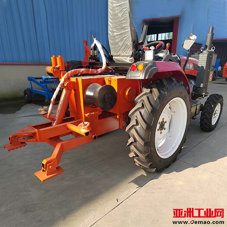 引普通钢丝绳或锦纶绳,另一边是带槽的大直径卷筒可以牵弓|无扭钢丝绳。拖拉机牵引机可以在座位上操作,也可以在地面操作;拖拉机牵弓|机可配