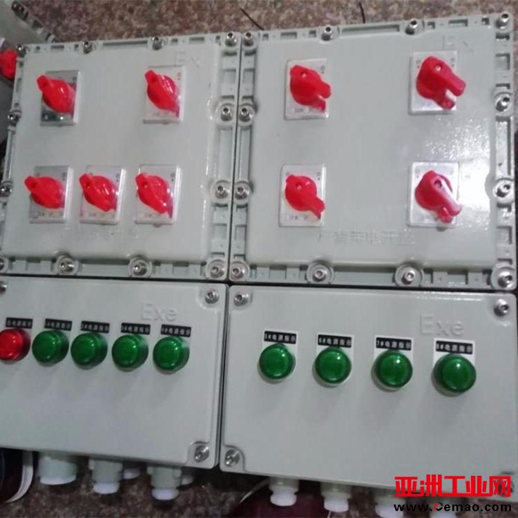 4.内部产品选择:在更换内部产品时,应选择质量有保证的产品,避免使用低价且没有质量保证的低阻产品,以免造成损耗加大和温度过高的情况。 5.导线进线口和出线口的设置:注意防爆配电箱的导线进线口和出线口的设置,尽量不要设在箱体的上顶面、侧面、后面或箱门处,尽量设置在箱体下底面。进线和出线应加护套并分路成束,导线束不能和箱体的进出口有直接的接触。 6.设备安装位置:设备的安装位置应设置在通风、干燥以及常温场所,设备周围应保留足够的工作空间和通道,不能堆放杂物,并且需要保证设备不受撞击、振动、液体侵溅以及热源烘烤等。 7.设备外壳和涂层:设备的外壳应采用铁板、铝壳、不锈钢板等绝缘材料制作,铝板的厚度应达到标准要求。设备的涂层应牢固均匀,没有皱纹、剥落、斑点、漏喷等不良现象,其表面要保持平整干净、没有凹坑或划痕等。