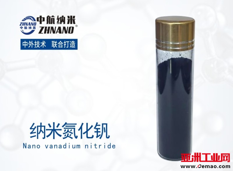 纳米氮化钒(VN)通过气溶胶烧蚀法制备,产品粒度分布均匀,量产大,可以大量应用到硬质合金方面,高的表面活性,可以很好的分散在合金材料中,起到合金弥散强化作用。氮化钒,别名是钒氮合金是一种新型合金添加剂,可以替代钒铁用于微合金化钢的生产。氮化钒添加于钢中能提高钢的强度、韧性、延展性及抗热疲劳性等综合机械性能,并使钢具有良好的可焊性。在达到相同强度下,添加纳米氮化钒节约钒加入量30-40%,进而降低了成本。