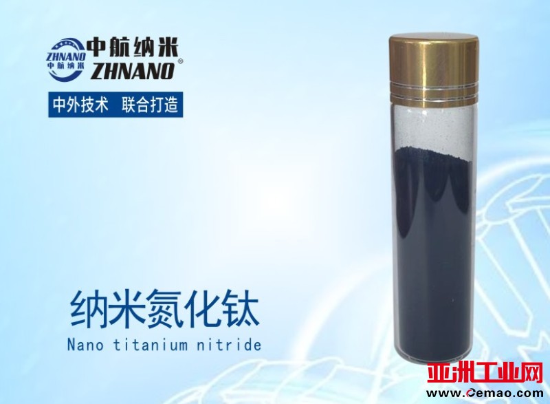 纳米氮化钛(TiN)通过气溶胶烧蚀法制备,纯度高,粒径小,分布均匀,比表面积大,表面活性高,氮量高,耐高温,抗氧化,硬度高,优异的吸收红外线性能(80%以上),紫外光屏蔽大于85%以上,可以应用在隔热涂料及汽车陶瓷膜上面,起到隔热及控温作用。该材料具有良好的导电性,可用作熔盐电解的电极和电触头等导电材料,用于增韧陶瓷以及耐高温结构陶瓷效果非常之好。