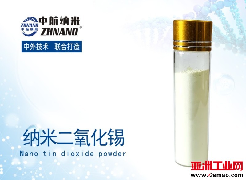 高纯纳米二氧化锡通过等离子体气相燃烧法制备,纯度高、粒径小、分布均匀,比表面积大、表面干净,无残余杂质,松装密度低,易于分散,很容易形成稳定的纳米浆料,降低了纳米氧化锡粉的分散难度,提高了分散效率,是一种透明导电材料,改善了纳米浆料的可见光透过率、导电率、薄膜的表面均匀性。