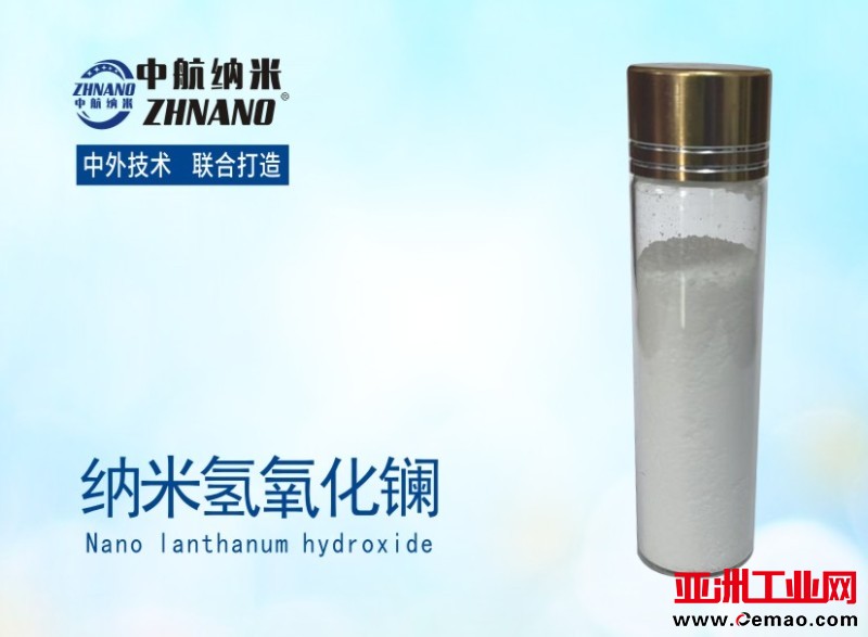 安徽中航纳米生产的纳米氢氧化镧,采用特殊工艺及纳米膜提纯技术,产品白度高、晶相纯、磁性金杂异物少(≤50ppb)、含水量低、化学性能稳定等优势,纳米氢氧化镧具有大的比表面积,独特的电子结构,可以与与其他元素形成镧配合物,从而与反应物更加完善的发生反应,极大地提高其催化活性。并且当受到外界光照时,La(OH)3半导体粒子的能带结构使其一个光子吸收的光照能量 hv,当这个能量大于禁带宽度或者等于禁带宽度时,La(OH)3半导体中的价带电子受到激发从价带跃迁进入导带,从而在 La(OH)3内部形成电子-空穴对,在电场作用下,这些光生电子-空穴通过扩散方式发生分离,并迁移到 La(OH)3粒子的不同位置,而这些激发态的电子和空穴能够与吸附在半导体粒子表面上的电子供体和电子受体发生氧化还原反应,从而具有氧化有机污染物的能力。