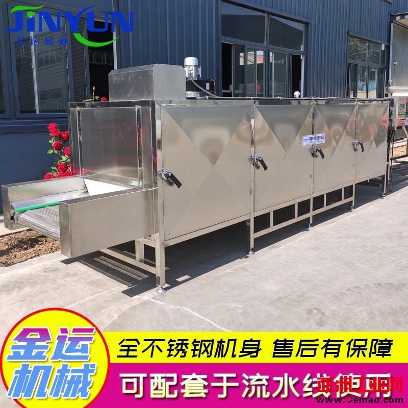 烘干机有循环风机,加热装置,新鲜空气抽入系统和尾气排出系统。对干燥介质数量,温度,湿度和尾气循环量操作参数,可进行独立控制,从而保证带干机的可靠性和操作条件,网带式烘干机操作灵活,湿物进料,干燥过程在密封的箱体内进行,劳动条件较好,免了粉尘的外泄。物料由加料器均匀的铺在网带上,网带采用不锈钢丝网。有传动装置拖动在干燥机内移动。网带式烘干机每一单元热风独立循环,部分尾气有专门排湿风机排出,废气有调节阀控制,热气有下往上或有上往下穿过铺在网带上的物料,加热干燥并带走水分。网带缓慢移动,运行速度可根据物料温度自由调节,干燥后的成品连续落入收料器中食品真空袋烘干机 三层网带式烘干机 水果蔬菜丁多层翻转烘干机。