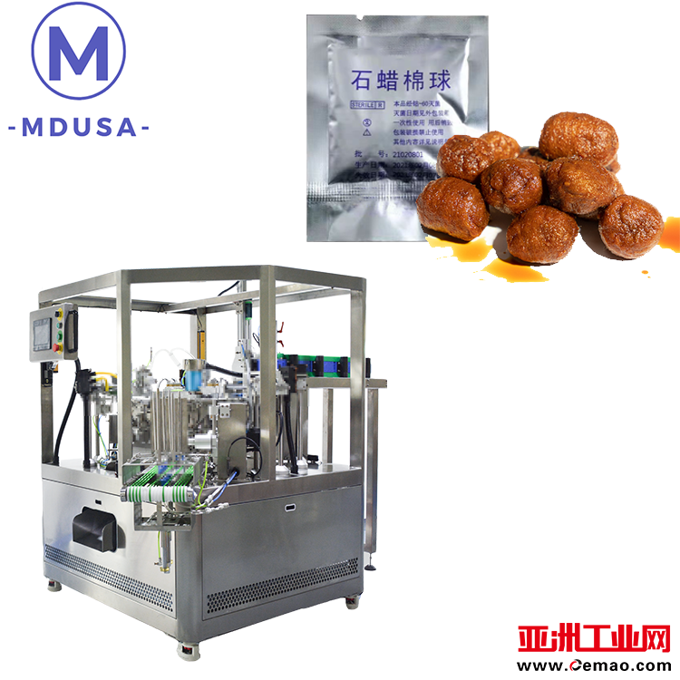 生产流程:生产流程:人工放料(人工将清点好的棉球装入卡槽中)→机器自动取袋→开袋→吹气扩袋→自动下料(设备 自动将卡槽里的棉球装入袋中)→灌装(碘伏)→封口→成品输出