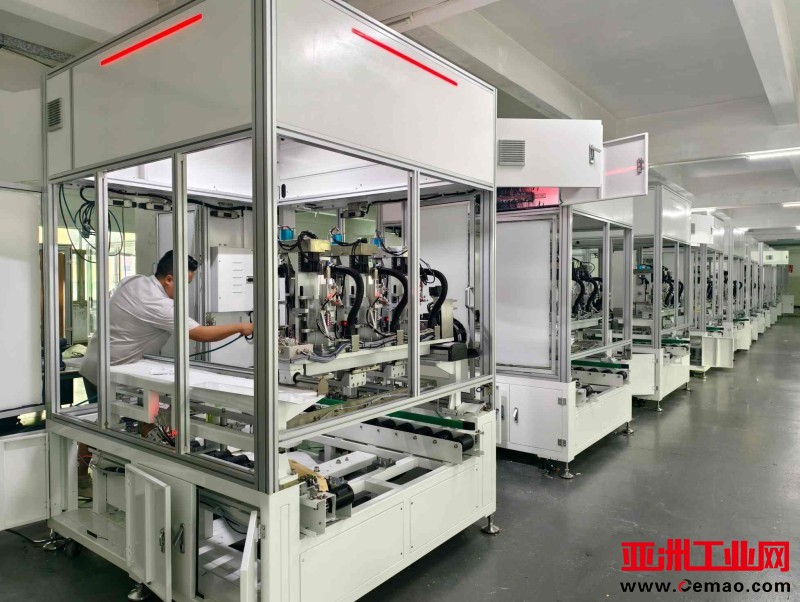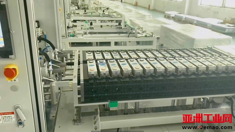 主要应用于化成段整托盘对注液孔周围溢出电解液的擦拭工艺,通过采用无尘布结合 DMC 溶剂的形式来进行擦拭、吸附处于液体状态的电解液;托盘经由物流线输送至设备内部,随后对整个托盘进行阻挡定位。分作三次进行擦拭,次为来回干擦拭注液孔周围,第二次是旋转湿擦拭注液孔台阶,第三次则是来回干擦拭注液孔周围,在擦拭注液孔台阶下时采用正反旋转的方式,擦拭注液孔周围时运用来回的方式,湿擦时先将 DMC 溶剂湿润无尘布,然后按压在注液孔上进行擦拭