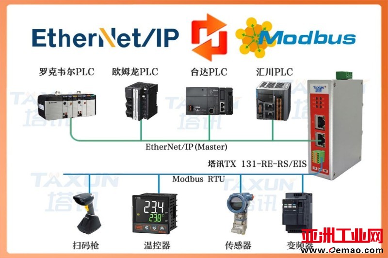 3. 协议转换网关:塔讯 TX 131-RE-RS/EIS 网关,具备良好的稳定性与可靠性,可在复杂的工业环境中稳定运行,实现 Ethernet/ip 与 modbus rtu 协议的可靠转换。