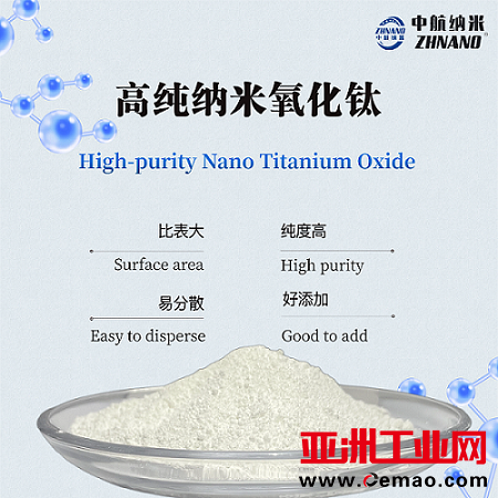 高纯气相二氧化钛(ZH-Ti-20NR)通过等离子体气相燃烧法制备,纯度高、粒径小、分布均匀,比表面积大、表面干净,无残余杂质,松装密度低,易于分散,小颗粒的气相氧化钛有很好的光催化效果,能分解在空气中的有害气体和部分无机化合物,空气净化、杀菌、除臭、防霉。纳米二氧化钛有**、自洁净性。