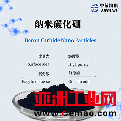 纳米碳化硼粉(ZH-B4C-01)通过气溶胶烧蚀法制备,产品纯度高、粒径小、分布均匀,比表面积大、高表面活性,松装密度低,是一种人工合成的超硬质材料,硬度仅次于金刚石,莫氏硬度9.46,显微硬度5600—6200Kg/mm2,比重2.52g/cm3,熔点2250℃,与酸、碱溶液不起反应,具有高化学位、中子吸收、耐磨及半导体导电性。是对酸稳定的物质之一,在所有浓或稀的酸或碱水溶液中都稳定。具有稳定的物理和化学性能,应用于硬质材料的磨削、研磨、钻孔等。