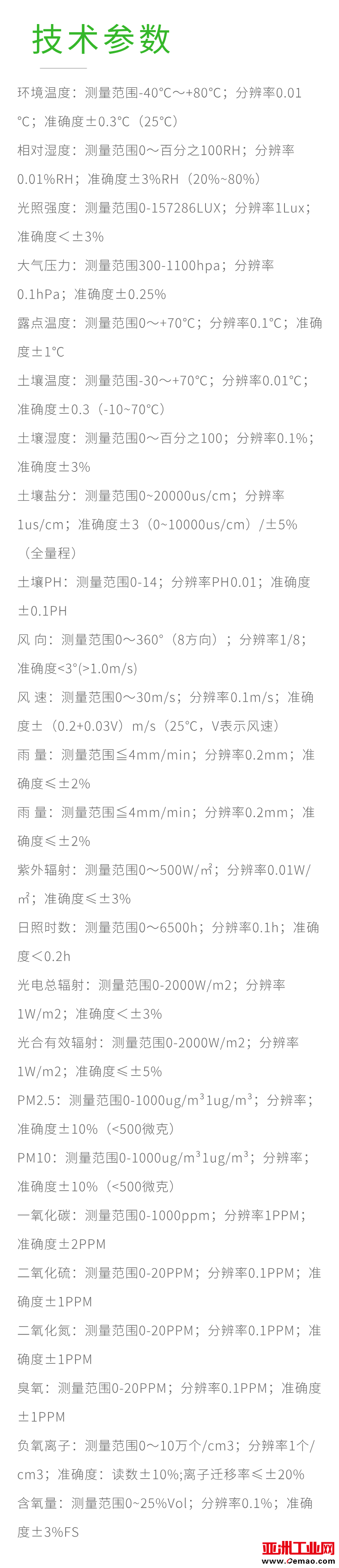 相对湿度:测量范围0~百分之100RH;分辨率 0.01%RH;准确度±3%RH(20%~80%)