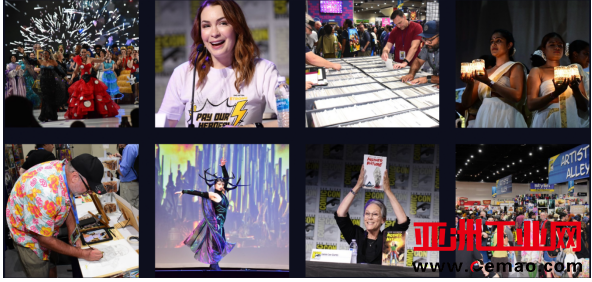 Comic-Con 是全球最具影响力的综合性流行文化盛会,涵盖漫画、电影、电视、、互动多媒体等众多领域。观众可以尽情体验角色扮演(Cosplay)的魅力,参与独特的活动与节目、预览及发布会,还可畅游内容丰富、品类多样的展览大厅(Exhibit Hall),欣赏和购买来自不同粉丝群体的展品与周边商品。每年的展会吸引了大量的原创画手、动漫作品出版商、动画、影视制作公司、厂商、动漫粉丝、动漫玩家、cosplay从业者及动漫领域投资商。