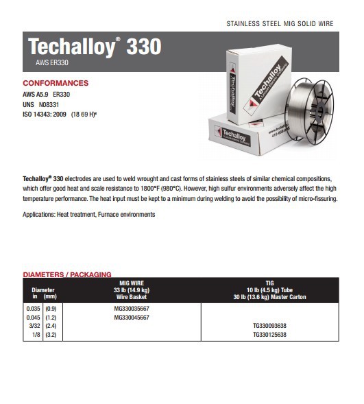 泰克罗伊ER330不锈钢焊丝Techalloy 330