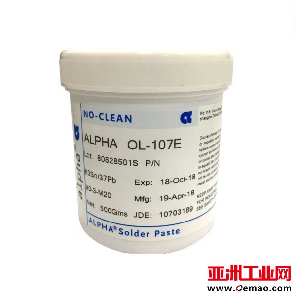 ALPHA OL107E型免清洗焊锡膏,3号粉,成分为63Sn/37Pb,熔点温度183°C。
