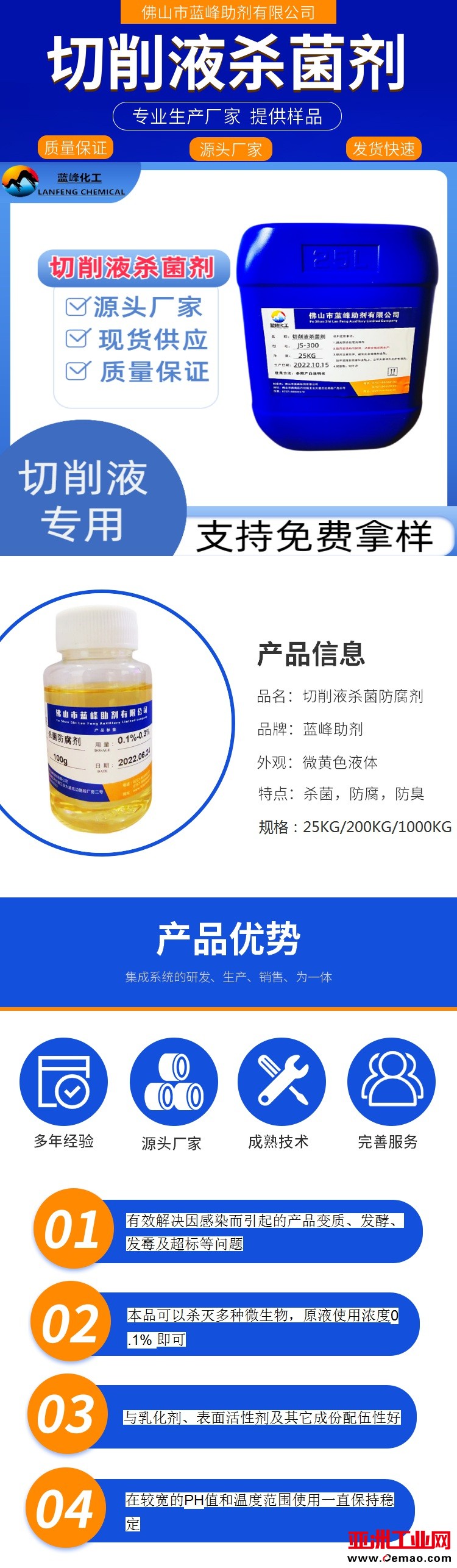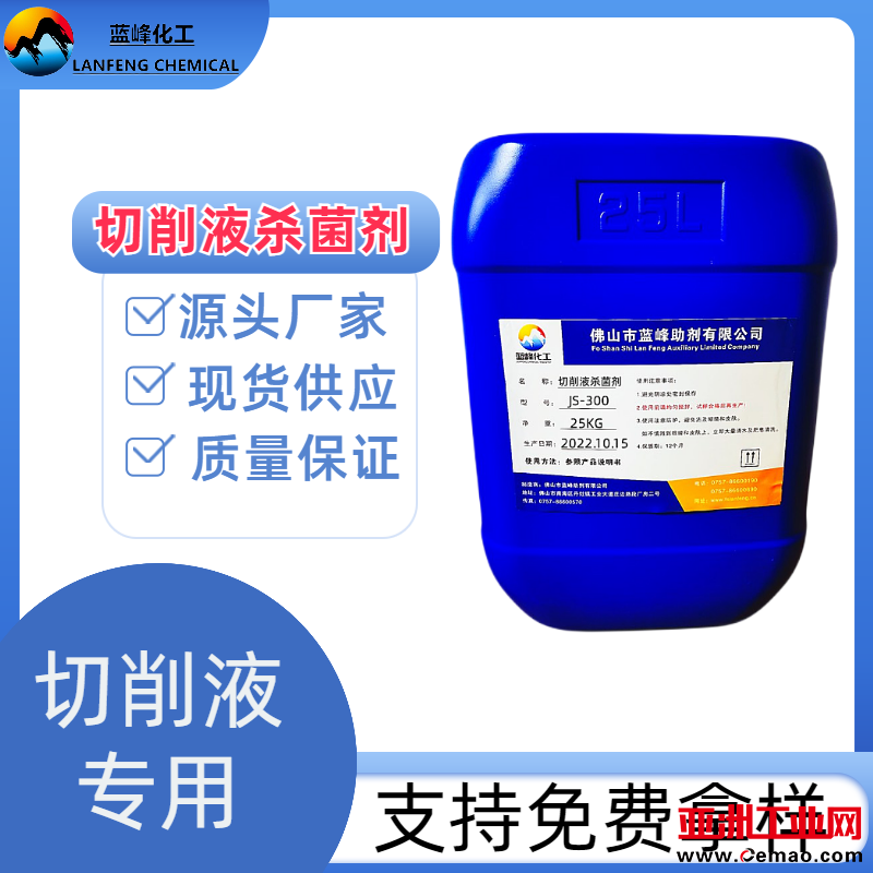 切削液可分为乳化液、半合成切削液和全合成切削液。当前切削液行业的杀菌防腐剂主要的以均三嗪为主要成份的杀菌剂占主导地位(该产品是一种甲醛缓释型的释放体),因其能普遍适应,切削液的偏碱性的PH值(切削液的PH值一般在9-10),再加上其杀菌广普,价格适中,所以现在仍然被广大厂家所采用。造成目前还在普遍采用均三嗪的普遍原因主要有以下几方面:均三嗪杀菌性能突出,能完全适应国内切削厂家的需要;佛山市蓝峰助剂有限公司生产的切削液杀菌剂使用既提高了产品质量,又降低了成本,并延长产品保质期。使用在切削液中不发黄,不变色,使用在金属切削液行业,能达到要求。