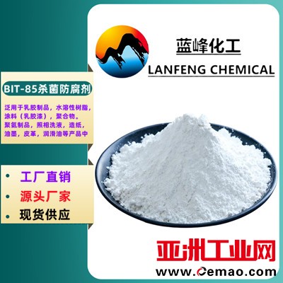 佛山市蓝峰助剂有限公司座落于经济高速发展的珠三角地区,其前身为佛山市南海区丹灶镇宏昌助剂厂成立于1999年,其间随着公司发展的需求现正式更名为佛山市蓝峰助剂有限公司,产品也在逐渐的改善中形成了集纳米抗菌产品研发、生产、销售于一体的高新技术企业。佛山市蓝峰助剂供应BIT-85防霉剂1,2-苯并异噻唑啉-3-酮BIT-85是主要的工业杀菌、防腐、防霉剂。具有突出的抑制霉菌(真菌、细菌),藻类等微生物在有机介质中的滋生作用,解决了微生物滋生引起的有机产品发霉、发酵、变质、破乳、发臭、等一系列问题