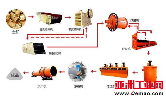 在浮选前或氰化流程中安插重选回路,虽然仍是一个难议题但南非威特沃特斯兰地区在一段磨矿回路中安装浮选机或重选设备尽早回收粗粒金,这对提高金的回收率无疑是有好处的。我国湖南一个金矿在磨矿回路中用摇床选金,对金的回收也确有提高。