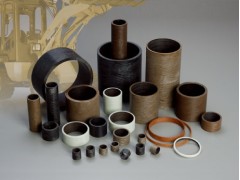 基材特性EP-2纤维型自润滑轴承系列材料以高强度玻璃纤维增强高温环氧树脂作为承载层,以特种纤维和PTFE纤维作为滑动层,使得轴承在高载低速工况条件下具有优良的耐磨性和很低的摩擦系数,甚至可以在长时间不加油的情况下仍能发挥良好的自润滑特性和很高的轴承比压。由此我们开发了可以适合不同工况下的多种自润材料。材料组