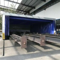 工作原理:移动伸缩前室由钢架结构和阻燃PVC布组成,通过平行四边形连杆机构或轨道驱动系统实现自动展开与合拢。工作时,前室沿轨道平滑移动至工件上方,形成封闭/半封闭空间进行喷漆;完成后收缩至一侧,节省空间并实现多工序共用场地。其核心系统包括: