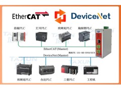 采用塔讯智能网关作为通讯枢纽,同时接入两台 PLC:网关 DeviceNet 侧作为欧姆龙 PLC 的从站,接收极片传输速度指令;EtherCAT 侧作为台达控制器的从站,反馈轧辊压力数据,构建 “双主站 - 单网关” 协同架构。
