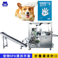 1.生产流程:人工放膜→自动折叠(三折或四折)→装袋→料液填充→排气→封口→钢印压 码→成品输出。